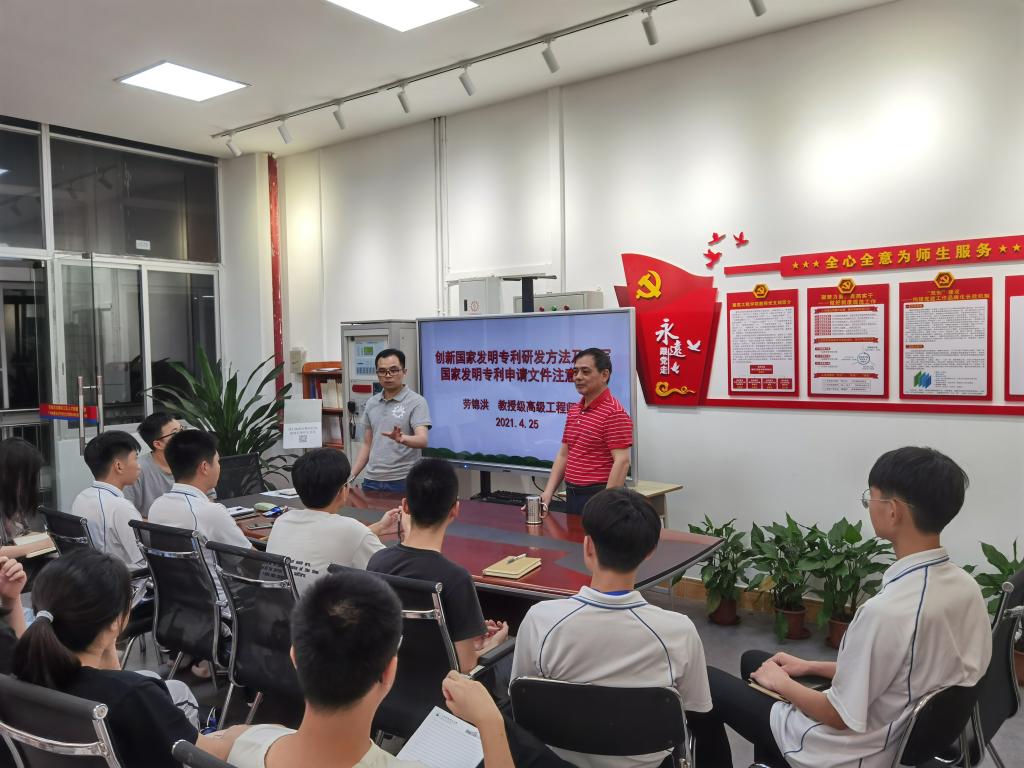 劳教授将创新精神和团队凝心聚力等思政教育融入到科技系列讲堂,为培养更多的德智体美劳全面发展的社会主义建设者和接班人,为学校建设省级高水平高职院校和升本发展,不断提高师生们的科技创新能力,2021年4月至今20多天时间就为该班的师生开讲了6次科技系列讲座。劳教授构建“以学生为中心”的科技系列讲座,使师生们较为直观、清晰地了解到创新国家发明专利研发方法和编写国家发明专利申请文件的重点及注意事项,获得了预期学习的良好效果,受到了师生们的欢迎和好评。