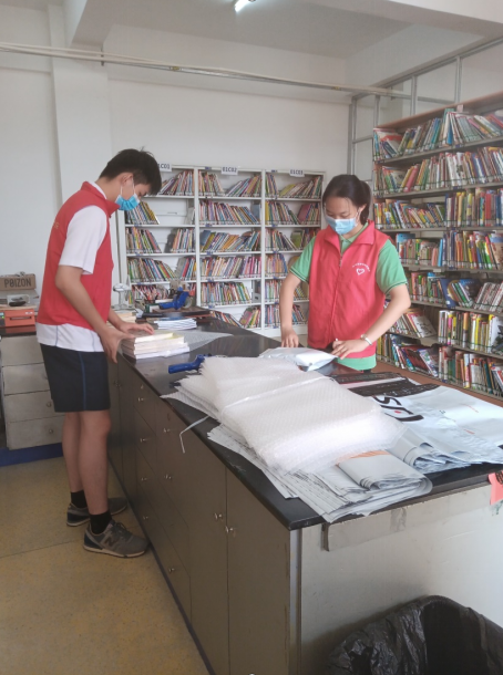 志愿者正在打包书籍