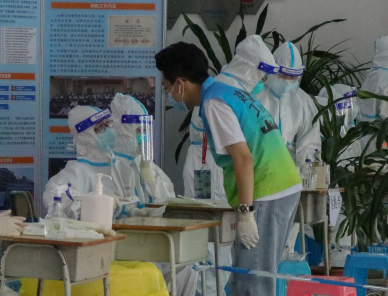 为在最短时间内阻断病毒传播途径、切断感染链条,医护工作者们坚守在核酸采集一线,一丝不苟地为每个受监测者采样;工作人员各司其职,以保证受检人员的队伍整齐有序;建工师生党员以及团委、学生会志愿者在本次核酸检测工作中做出极大贡献,再次展现了“城建顶梁,建工护航”精神。