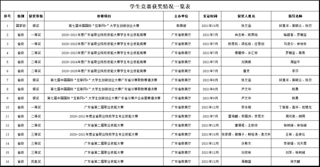 2021年12月6日,广东省第二届职业技能大赛在广州海心沙亚运公园顺利收官,我院学子获1金1银2铜佳绩。