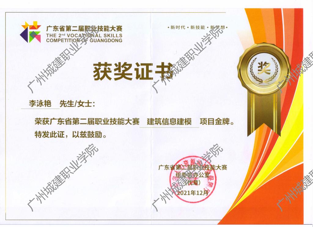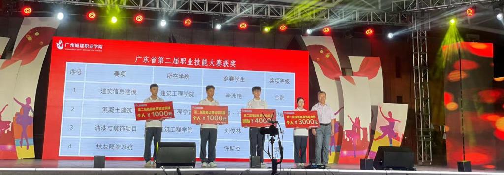 其中,李泳艳在建筑信息模型项目中斩获金牌,唐璟程、王致竣团队在混凝土建筑项目中斩获银牌,刘俊林、许斯杰在油漆与装饰、抹灰与隔墙系统项目中分别斩获铜牌,参加瓷砖贴面和网络系统管理项目的周朝盛、曾广荣获优胜奖。学校党委副书记、副校长张德宜在先进个人颁奖典礼上为其颁奖。