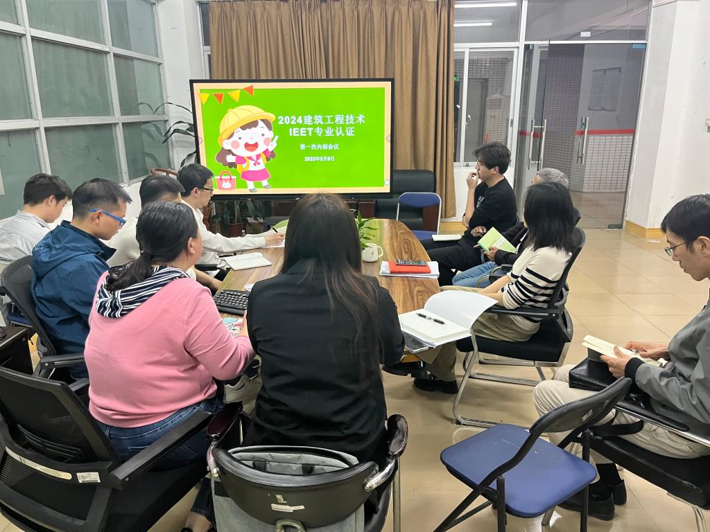 为进一步深化专业内涵建设,强化成果导向优质教学,助力省域双高校培育建设,学院将全面推动我院建筑工程技术专业IEET认证工作的有序开展。3月9日晚上在建工机电楼A601会议室召开建筑工程技术专业IEET认证第二次内部会议。会议由蒋艳芳副主任主持,教学副院长高华、李晓琳主任、夏俊杰副主任及教研室大部分老师出席会议。