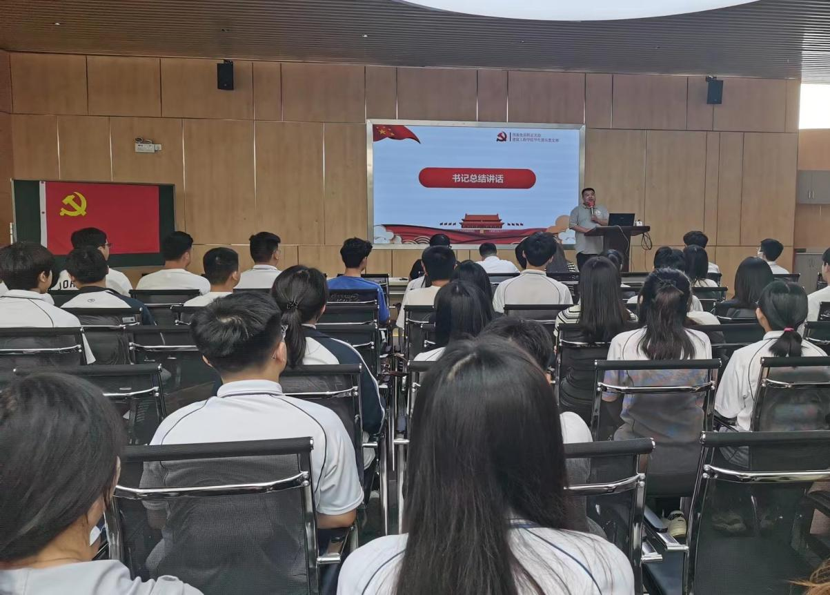 宣誓结束后,学校党委委员、学院党委书记张双总结讲话。首先,他对转正成功的党员同志表示祝贺并提出要求,希望各位党员同志能时刻牢记自己的党员身份,发挥好党员的先锋模范作用。其次,他对即将毕业的党员同志们寄予厚望,青年党员是党和国家未来的希望,希望毕业生步入工作岗位后,始终牢记入党誓词,将初心与使命更好的践行在工作岗位,并成为行业的中流砥柱。最后,他嘱托全体党员,望各位党员能够自觉学习党史知识,提高明辨是非的能力,提高政治素养,不忘初心,踔厉前行!