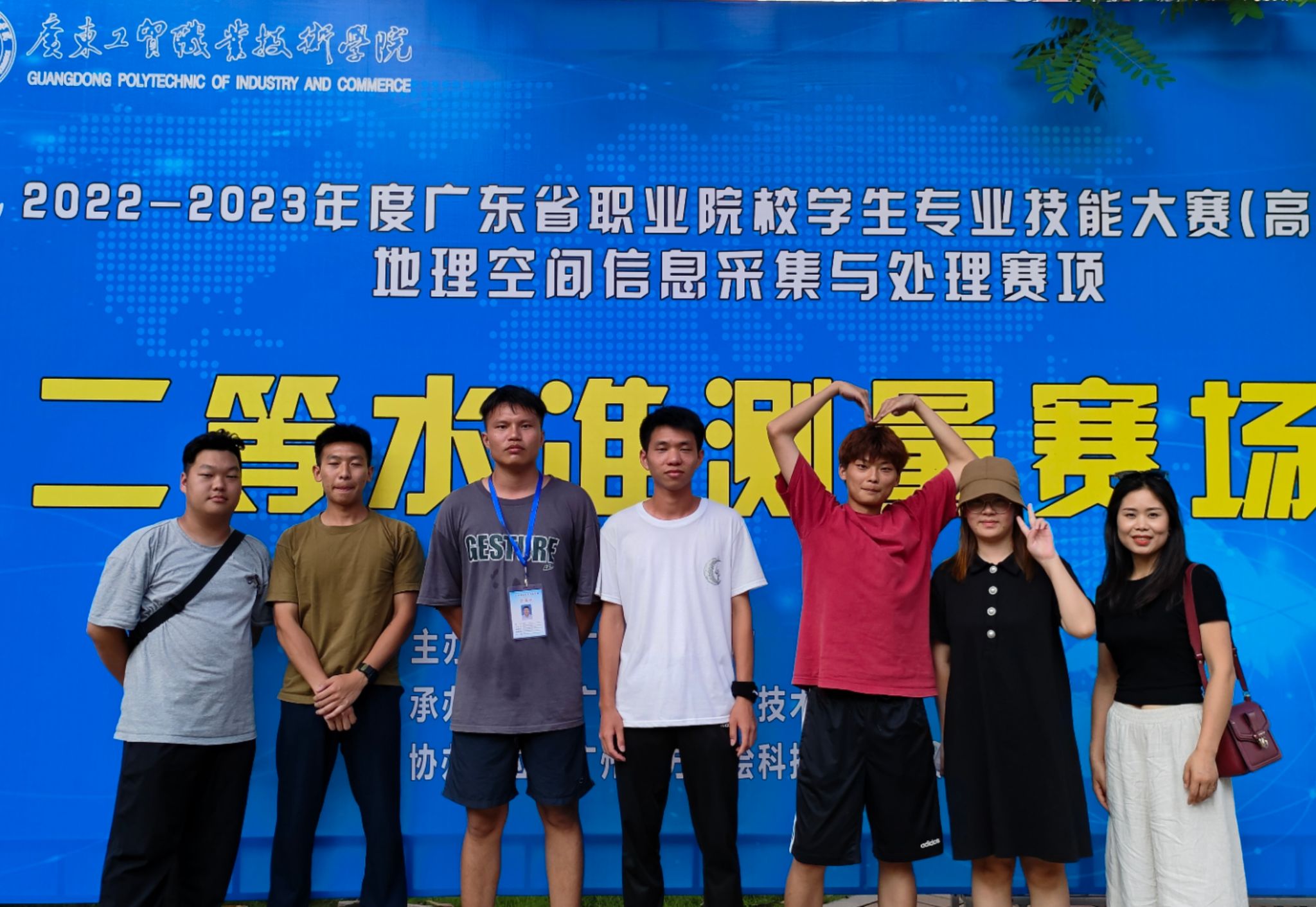 5月26日-28日,由广东省教育厅主办的2022-2023年度广东省职业院校学生专业技能大赛“地理空间信息采集与处理”赛项在广东工贸职业技术学院举办。大赛共有21所院校、84名选手同台竞技,围绕二等水准测量、1:500数字测图、工程放样等内容展开激烈角逐。我校best365网页版登录测绘地理信息技术专业学生(黄江东、郭景钦、杨明培、江之斌),在章琼主任领队,陈浩楠、廖明惠两位老师的悉心指导下,团结合作、奋力拼搏,最终荣获总分排名第六,团体二等奖的好成绩。