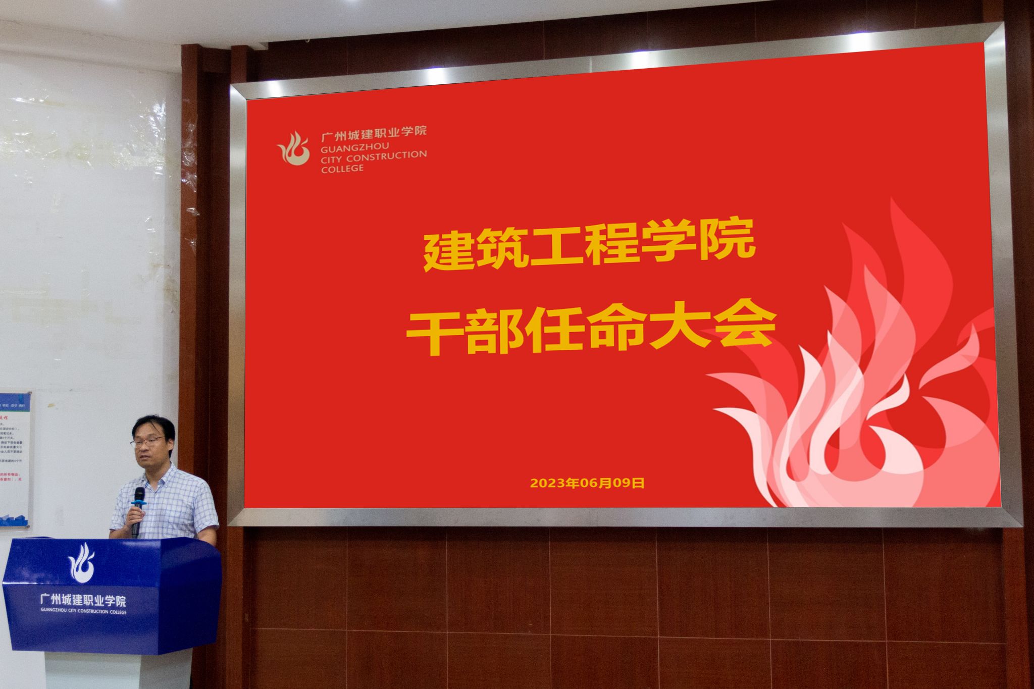 6月9日上午,建工机电楼101报告厅,学院全体教职工齐聚一堂,副校长鄢维峰代表学校宣布学院新一届领导班子成立。