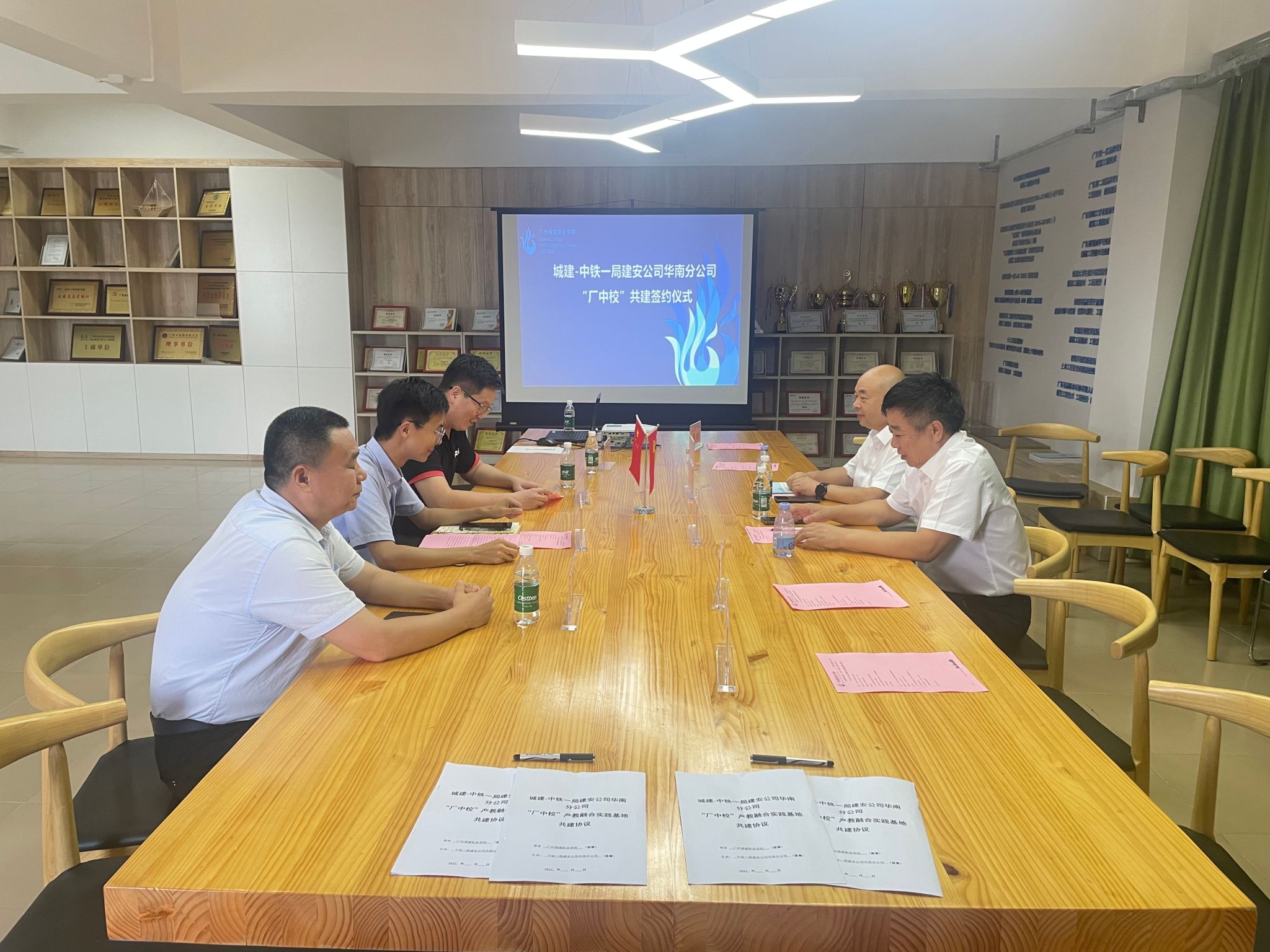 6月20日,我院与中铁一局建安公司华南分公司在建工机电楼603会议室举行“厂中校”签约仪式和大学生校外实践基地授牌仪式。中铁一局建安公司华南分公司党委书记宋再荣,办公室主任段新军,best365网页版登录党委副书记王柳杨和副院长高策等出席会议。