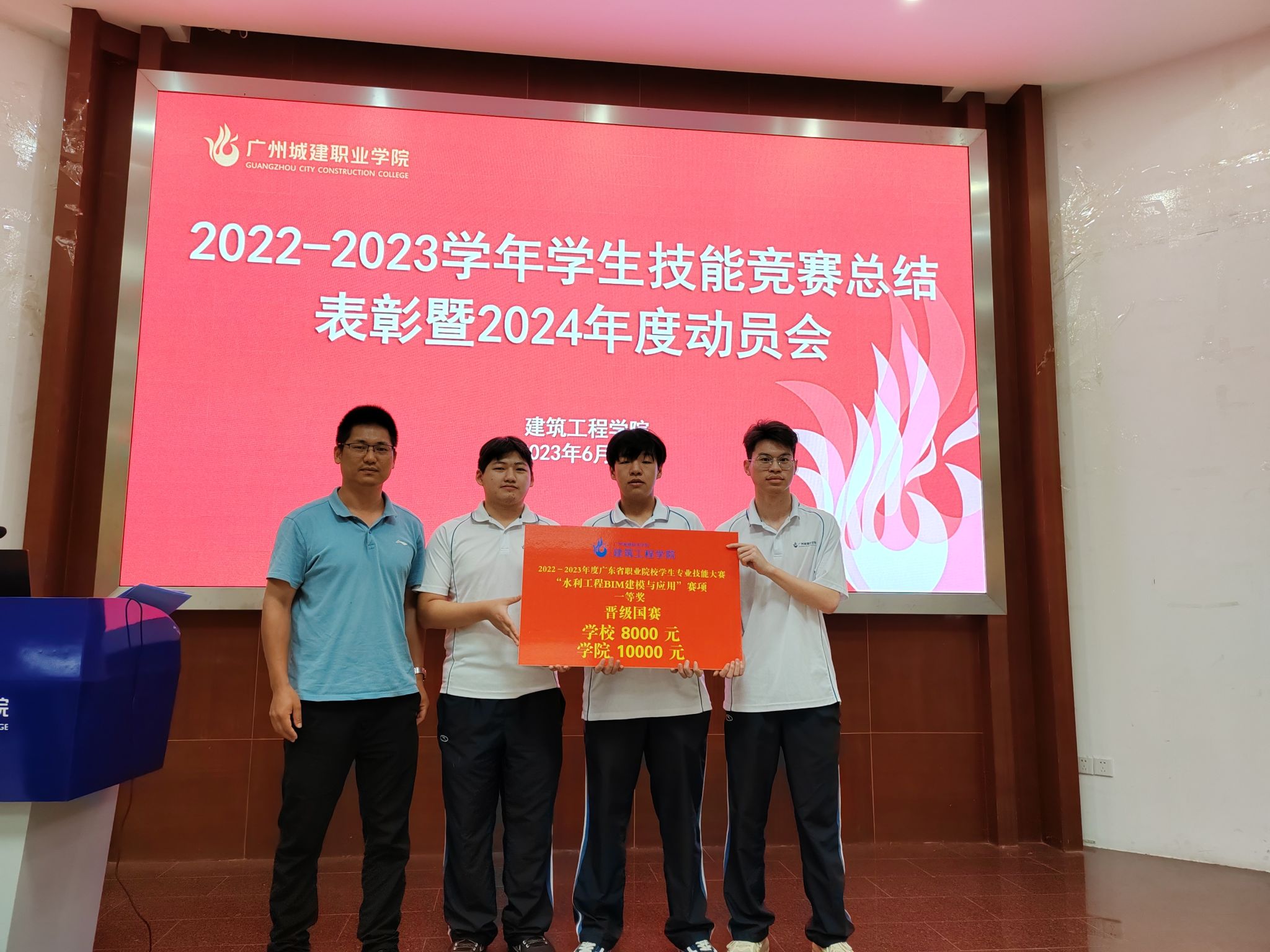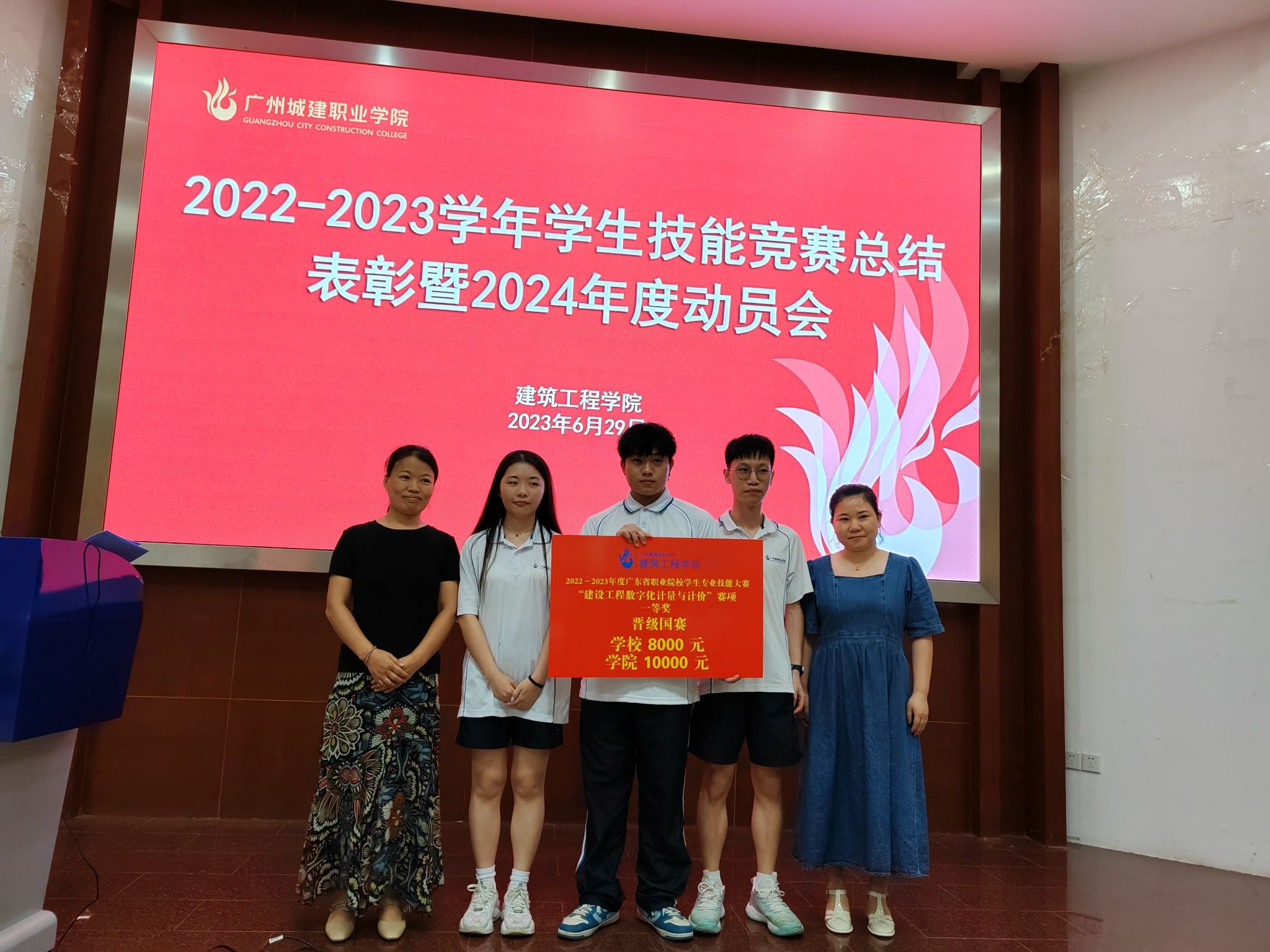 吴承霞作总结及动员讲话。2022-2023年度best365网页版登录共计13支队伍28名学生参与职业院校学生专业技能竞赛的10赛项,共获得一等奖5项(晋级国赛2项),二等奖6项,三等奖2项,获奖率100%。广东省第三届职业技能大赛获铜牌1枚。对于晋级国赛的水利工程BIM建模与应用及建设工程数字化计量与计价赛项团队她鼓励要以学校荣誉为重,在赛场上赛出风格,赛出成绩,要在国赛舞台上印上城建的印记,贡献建工的音符。同时,她提出本年度技能竞赛的获奖情况充分展现了我院学子扎实的专业技能和良好的精神风采,并动员专业学生要积极投入到竞赛中去,要敢于尝试。相信经过老师的指导与队员的刻苦训练,同学们将不负重望,不辱使命,为自己,更为学校、学院交上一份满意的答卷。