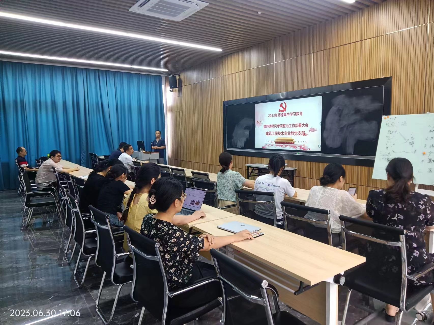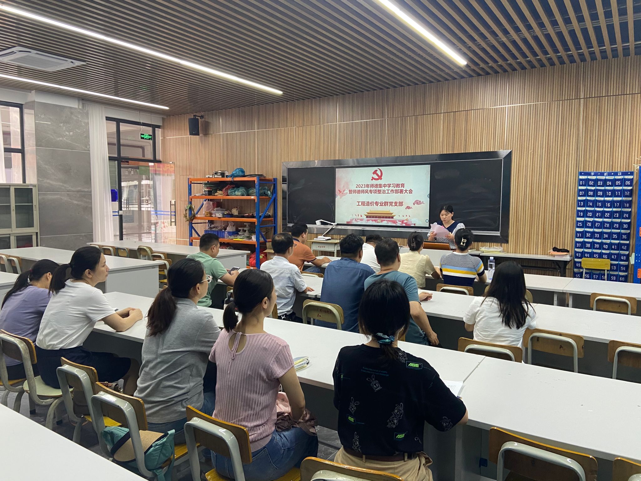 杨树峰和袁燕同志分别与建筑工程技术专业群、工程造价专业群党支部传达了《广东省教育厅转发教育部关于在教育系统开展师德集中学习教育的通知》文件精神,对照学校2023年师德集中学习教育暨师德师风专项整治工作方案作工作部署。