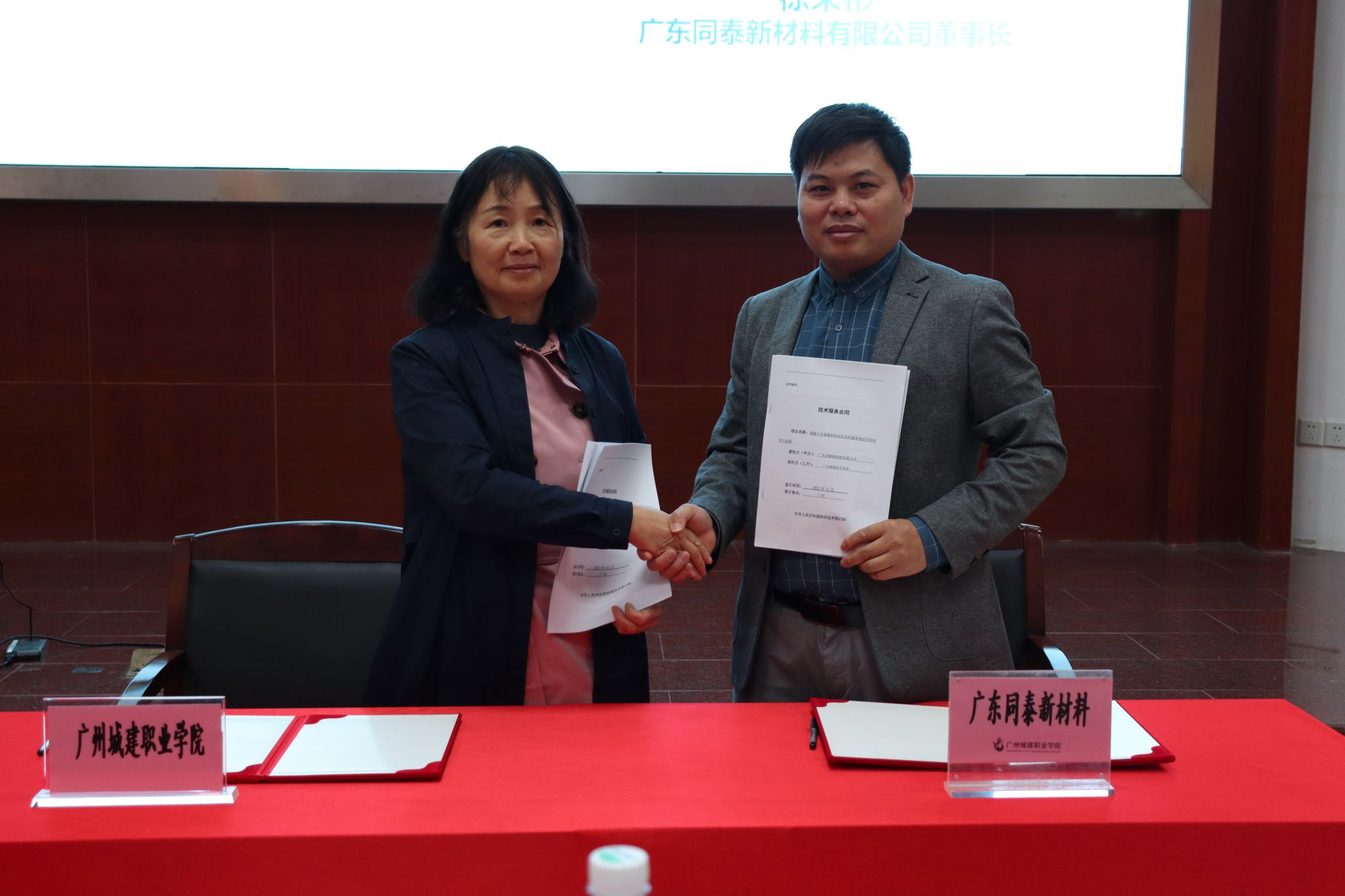 随后,学院党委书记、院长吴承霞分别与房林林及广东同泰新材料有限公司董事长徐荣彬签署了技术服务协议。