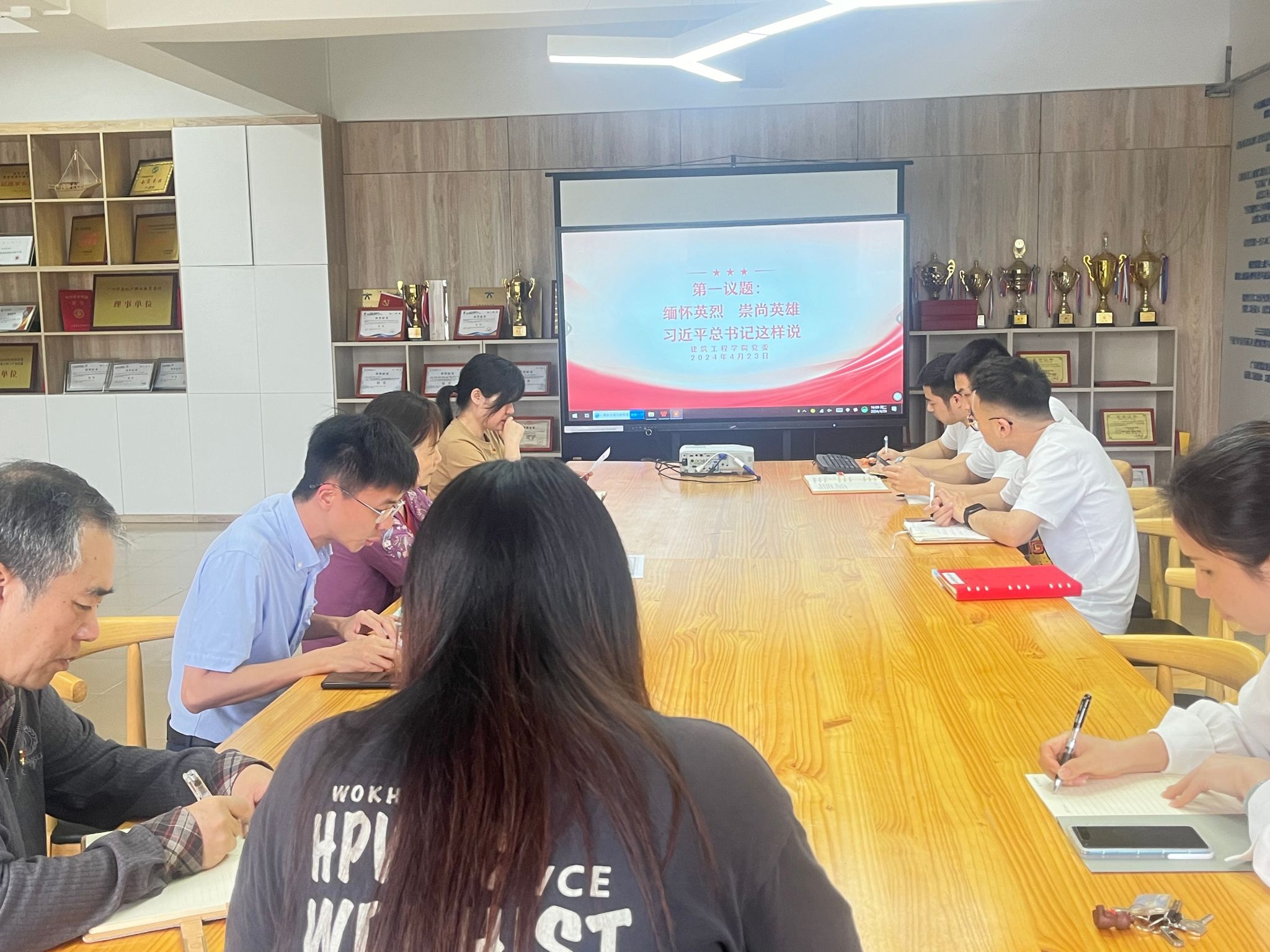 会议开始,王柳杨带领全体同志共同学习第一议题“崇尚英雄、缅怀先烈”,指出大家要深刻认识到缅怀英烈、崇尚英雄的重要性并应时刻铭记他们的历史功绩和精神财富,不断学习和传承他们的精神,深刻学习领会中国共产党人精神谱系,与学校“双高”建设和学院高水平专业群建设相结合,实现职业教育高质量发展。