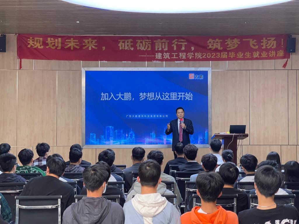 首先,袁新军介绍了公司企业文化、企业历程、项目概况、经营范围、未来发展方向以及人才需求等内容;并对目前的就业形势进行分析,和针对00后大学生的就业价值取向进行讲解,同时就新时代大学生如何面对校园与职场的转换提出三点建议:一是合理分配时间,求职面试等时间安排与用人单位招聘计划相匹配;二是确认自身的职业规划,系统分析招聘信息,摒弃眼高手低的观念,树立正确的就业观;三是要调整好心态,提高自身应变能力,更好地应对求职过程中的突发状况。最后,毕业生就此次宣讲会所存在的疑问进行提问,广东大鹏建筑科技集团的工作人员耐心地一一解答。会后,广东大鹏建筑科技集团工作人员对投递简历的毕业生进行面试,此次宣讲会圆满完成。