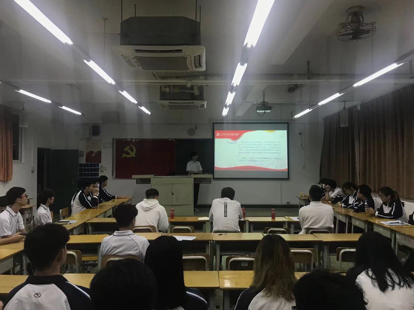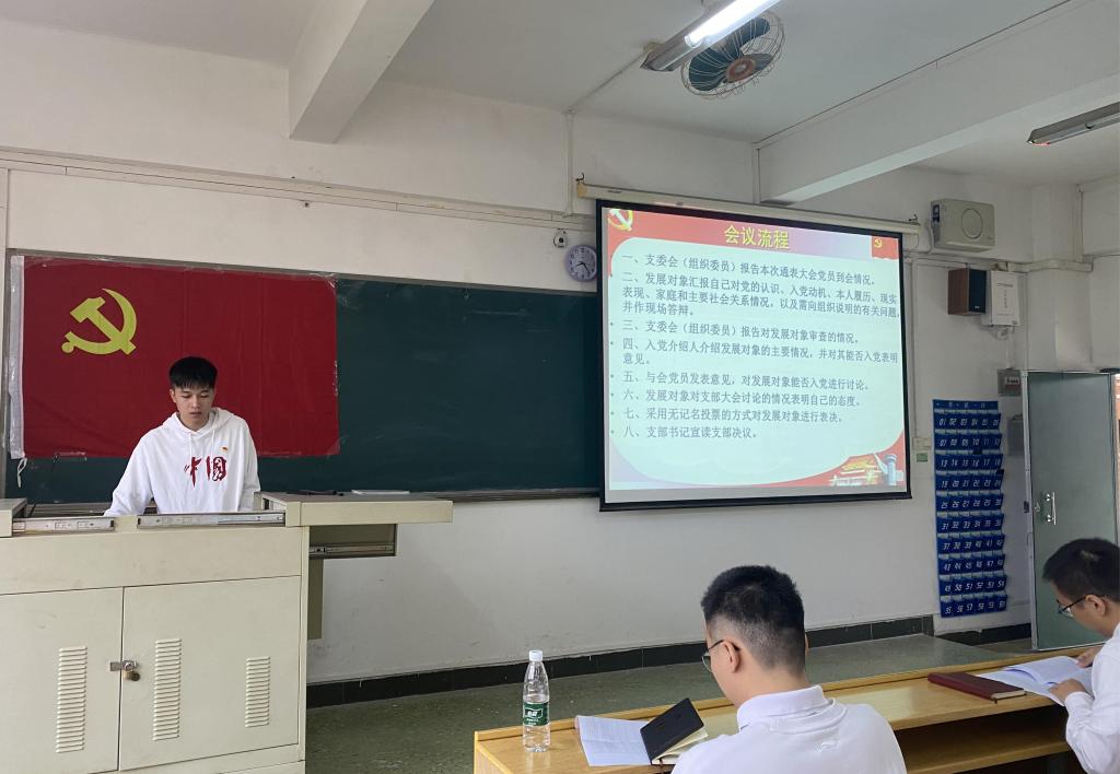 首先,全体到会人员奏唱国歌,随后,36名发展对象依次上台,从思想、学习、生活、工作等方面汇报了在发展期间的心得体会,表明了今后努力的方向,表达了坚定不移追随党的决心及态度。紧接着,与会正式党员发表个人意见和看法,并对申请人员进行表决,最后通过程予等33名发展对象入党的申请。