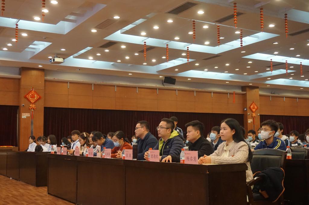 本次决赛邀请了校党委组织部部长吴辉军、马克思主义学院基础教研室主任刘欣、马克思主义学院中国化教研室主任张康、马克思主义学院温顺老师担任评委,校党委、二级学院党委党务专干、组织员等380余人出席。