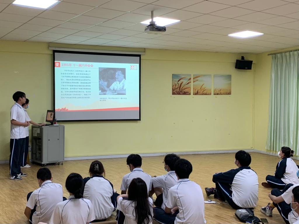 活动在庄严的国际歌中拉开序幕。首先,主持人部署了活动有关的内容,强调了本次活动需要根据百年党史时间轴线分小组进行讨论学习并根据要求讲述了从1921年中国共产党成立到1956年中国共产党第八次全国代表大会的召开等内容,其中,党的八大宣告了社会主义革命的基本完成和社会主义制度的基本确立。随后,各小组用笔墨纸砚绘制时间轴线上的重点事件,在激烈的讨论后大家画起了嘉兴南湖上的红船、星星之火、防控医护人员,写起了红军长征中的经典诗词,也展现了第一课原子弹、第一座核电站等。