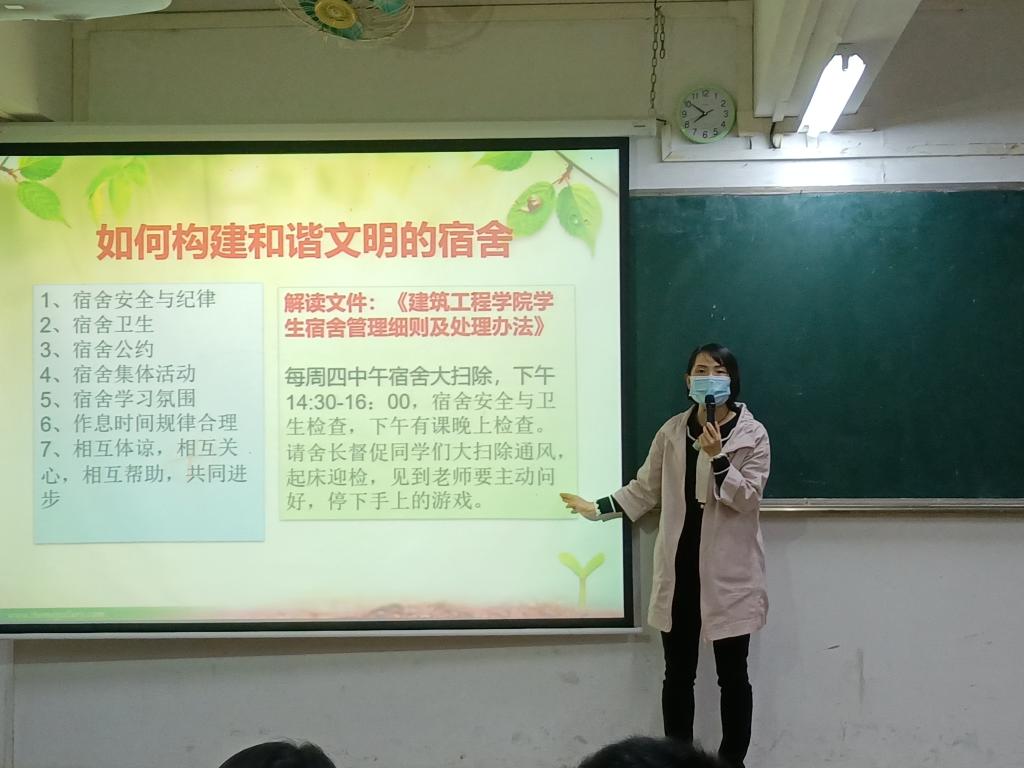 best365网页版登录熊懿老师、周小清老师、胡国兴老师、赖伟杰老师、陈明干老师,主讲的专题是文明宿舍建设、疫情防控下宿舍长的职责,从什么是宿舍长、宿舍长的重要性到如何建设文明宿舍。为宿舍长们做了深入细致的讲解培训,宿舍长们听的十分认真。