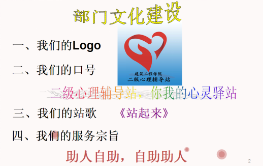 best365网页版登录二级心理辅导站是以推广健康心理为主,快乐为辅,配以各项相关公益性,健康性及娱乐性校园内外活动为补充的系统的群众性组织,服务于全校最大的二级学院,有着最多的在校人数,以“助人自助,自助助人。促进心灵交流,营造健康心理气氛”为宗旨,并在全校中有较强的创新力和综合实力的学生心理组织,连续四年评为全校“优秀二级心理辅导站”。